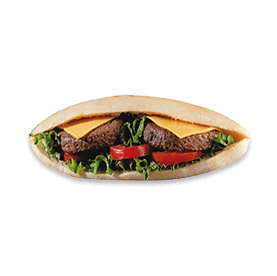 Pain long, 2 steaks, 2 cheddar, crudités, sauce au choix. 1 Euro de plus pour un supplément frites.