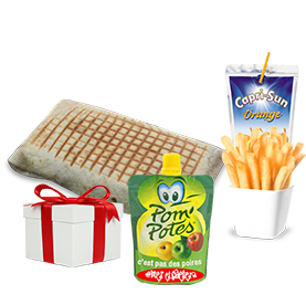 Mini tacos + Sauce au choix + Frites + Compote + Capri-Sun + Jouet surprise.