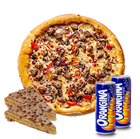1 Pizza Medium au choix + 2 Desserts au choix + 2 Boissons 33cl au choix.