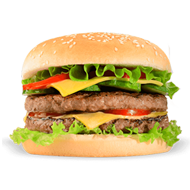 Double steak (180g), cheddar, crudités, sauce au choix.