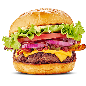 Steak, bacon, cheddar, crudités, sauce au choix.