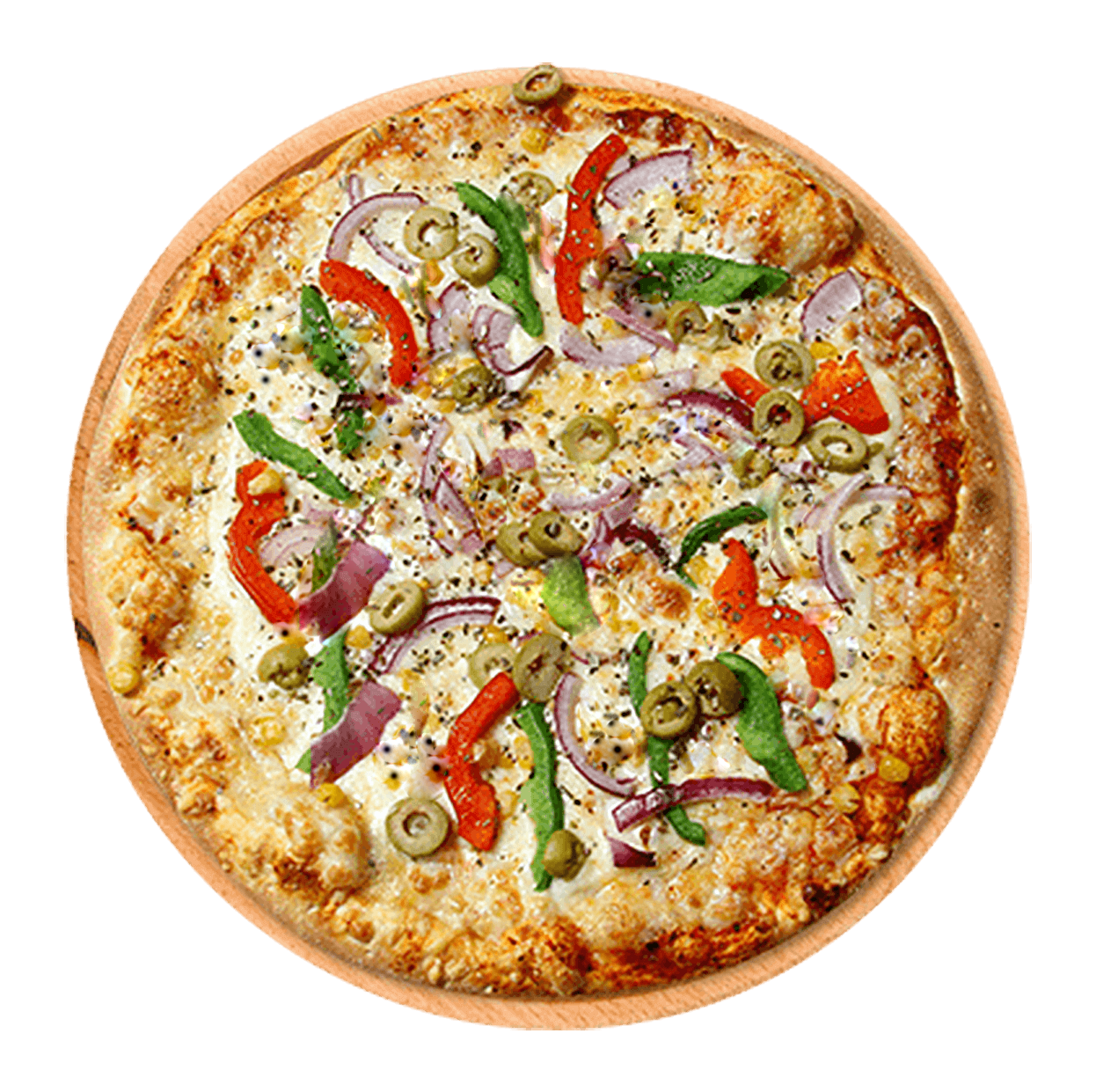 Sauce tomate, crème fraîche, mozzarella, viande hachée épicée, merguez, jambon de dinde, poivrons, olives.