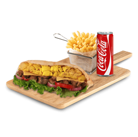 1 Steak, chicken, cheddar + Frites + 1 Boisson 33cl au choix.