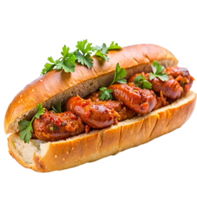 2 Merguez fraîches du boucher, cheddar, crudités.
