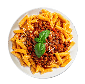 Sauce tomate, viande hachée, fromage gratiné. + Pain maison offert.
