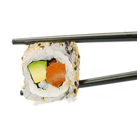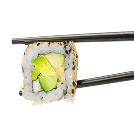Rouleau de riz inversé garnis avec des graines de sésame.