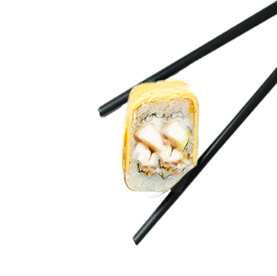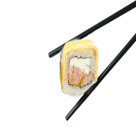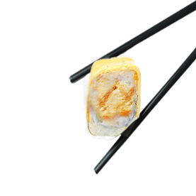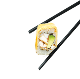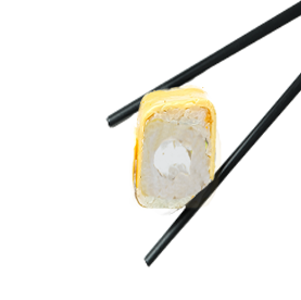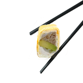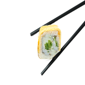 Riz et poisson enroulés dans une fine feuille d'omelette.