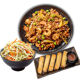 Riz au choix + 4 Nems au choix + 1 Entrée au choix + 1 Boisson 33cl au choix.