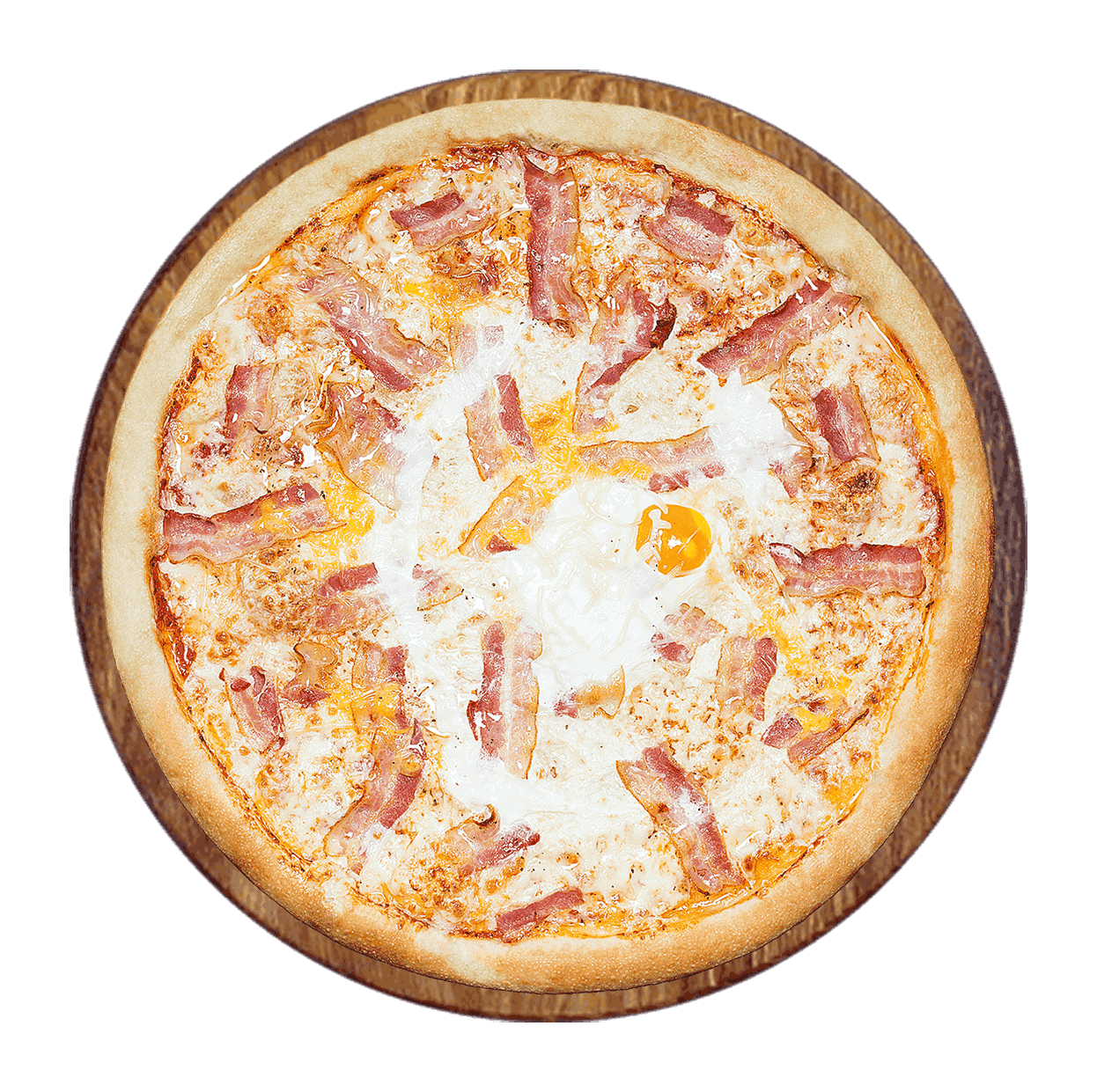 Crème fraîche, mozzarella, bacon, champignons, oeuf.