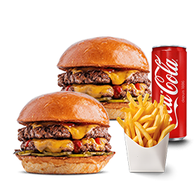 2 Double cheese + Frites + 1 Boisson 33cl au choix.