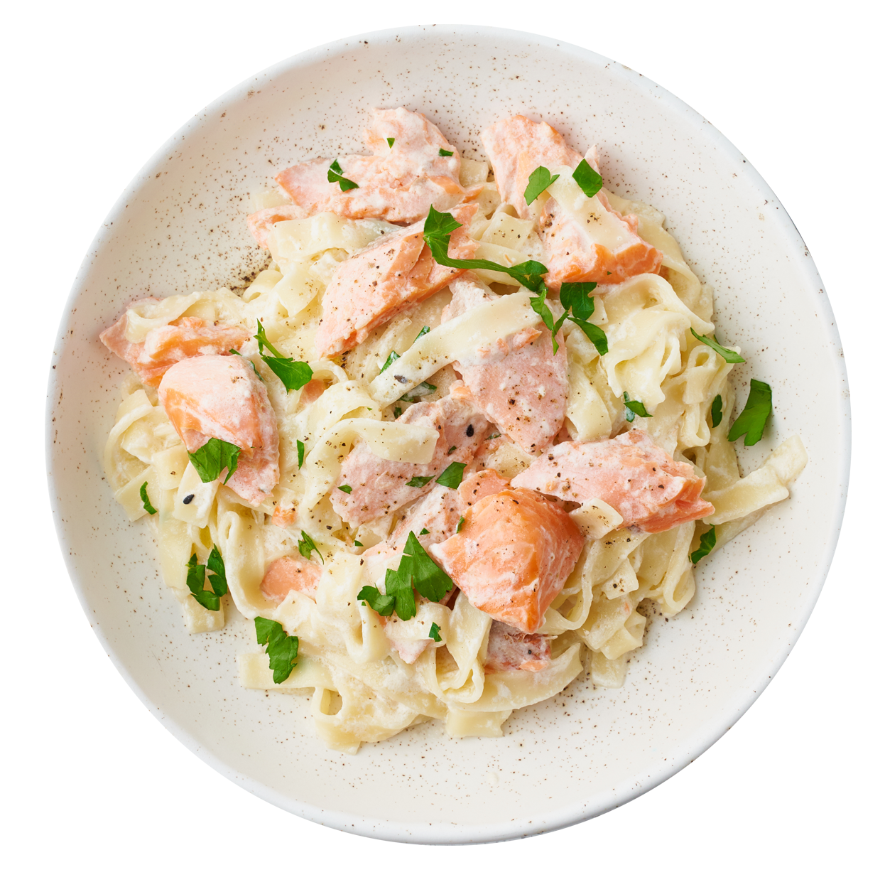 Crème fraîche, saumon fumé + Servie avec parmesan.