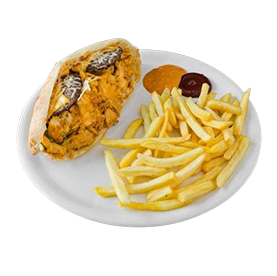 Marinade mixte (poulet chika et poulet tandoori), fromage cheddar.
