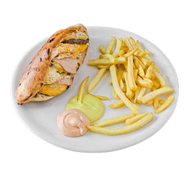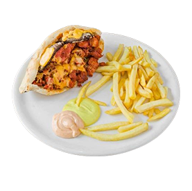 Marinade mixte (poulet chika et poulet au crème), fromage cheddar.