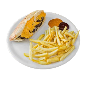 2 Steaks, fromage cheddar, jambon de dinde, oeuf.