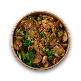 Boeuf, concombre, oignons, carottes, coriandre, pousse de soja et sauce Tori.