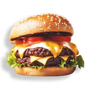 2 Steaks de boeuf smashés 75g, cheddar, oignons rouges, salade, tomates, sauces au choix.