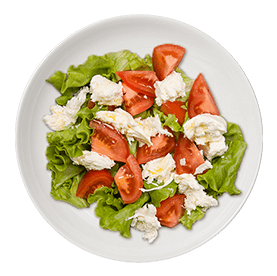 Pain au choix Roquette, tomates cerises, burrata, parmesan, crème au vinaigre balsamique.