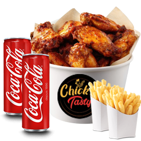 16 Hot wings + 2 Portions de frites + 2 Boissons 33cl aux choix.