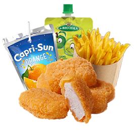 6 Nuggets + Frites + 1 Pom potes + 1 Capri-Sun + Jouet.