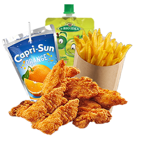 3 Tenders + Frites + 1 Pom potes + 1 Capri-Sun + Jouet.