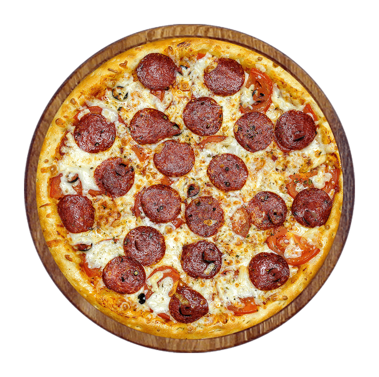 Tomate, fromage, merguez, pepperoni, chorizo, olives.