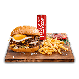 2 Steaks 45g, cheddar, oeuf.