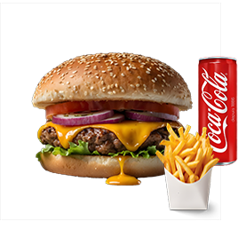1 Steak, 1 cheddar. Servi avec frites et 1 boisson 33cl au choix.