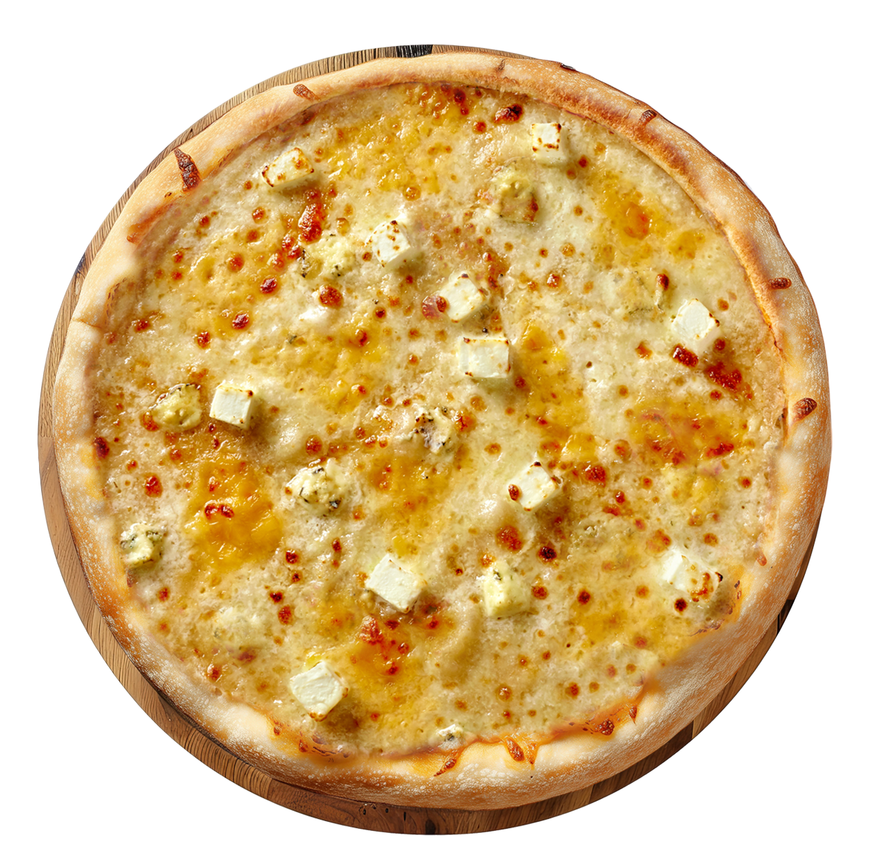 Crème fraîche, fromage, viande hachée, chorizo, poulet, oignons.