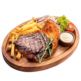 1 Viande au choix, crudités + Frites.