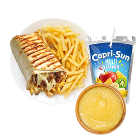 1 Cheese burger + Frites + Compote + Capri Sun.