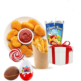 4 Nuggets + Frites + Capri sun + Kinder + Jouet + Sucette.