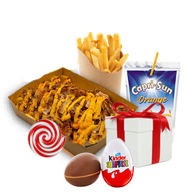 Petite viande + Frites + Capri sun + Kinder + Jouet + Sucette.