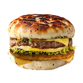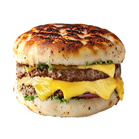 Naan double avec 2 steaks, 2 cheddar, oeuf, oignons crispy, 2 tenders.