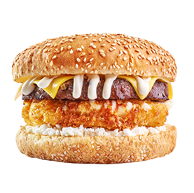 Pain brioché, steak 120g, fromage raclette, crudités.