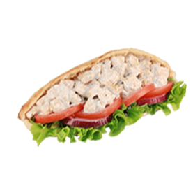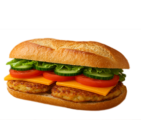 Escalope de poulet, cheddar, crudités.