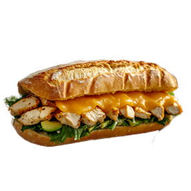 Poulet boursin, cheddar, crudités.