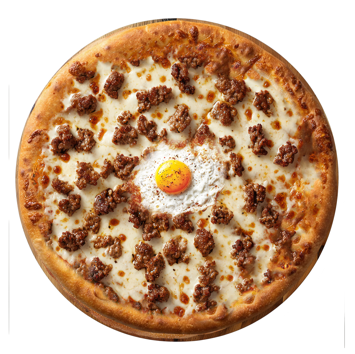 Tomate, fromage, viande hachée, pepperoni, cheddar.
