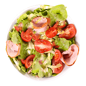 Salade, tomates, jambon, mozzarella.