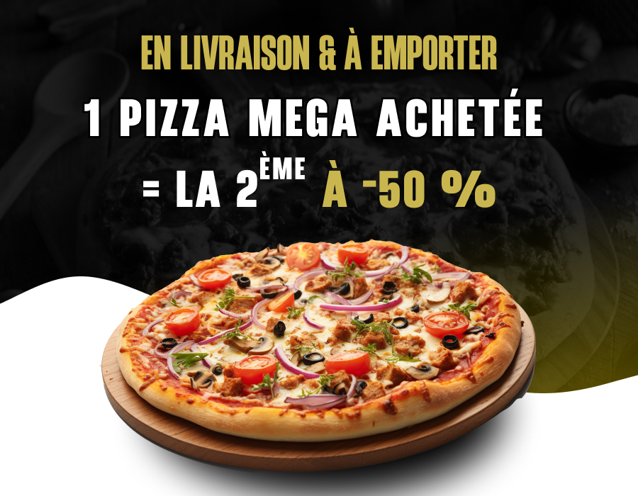 Sauce tomate, double fromage, viande hachée, merguez, poivrons, olives.
