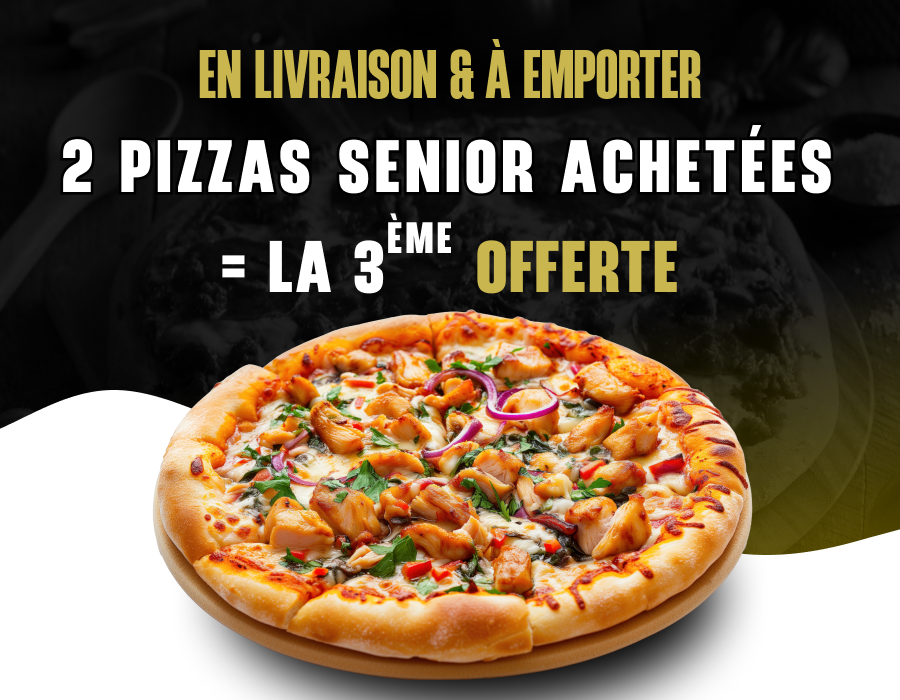 Sauce tomate, double fromage, jambon, lardons, viande hachée.