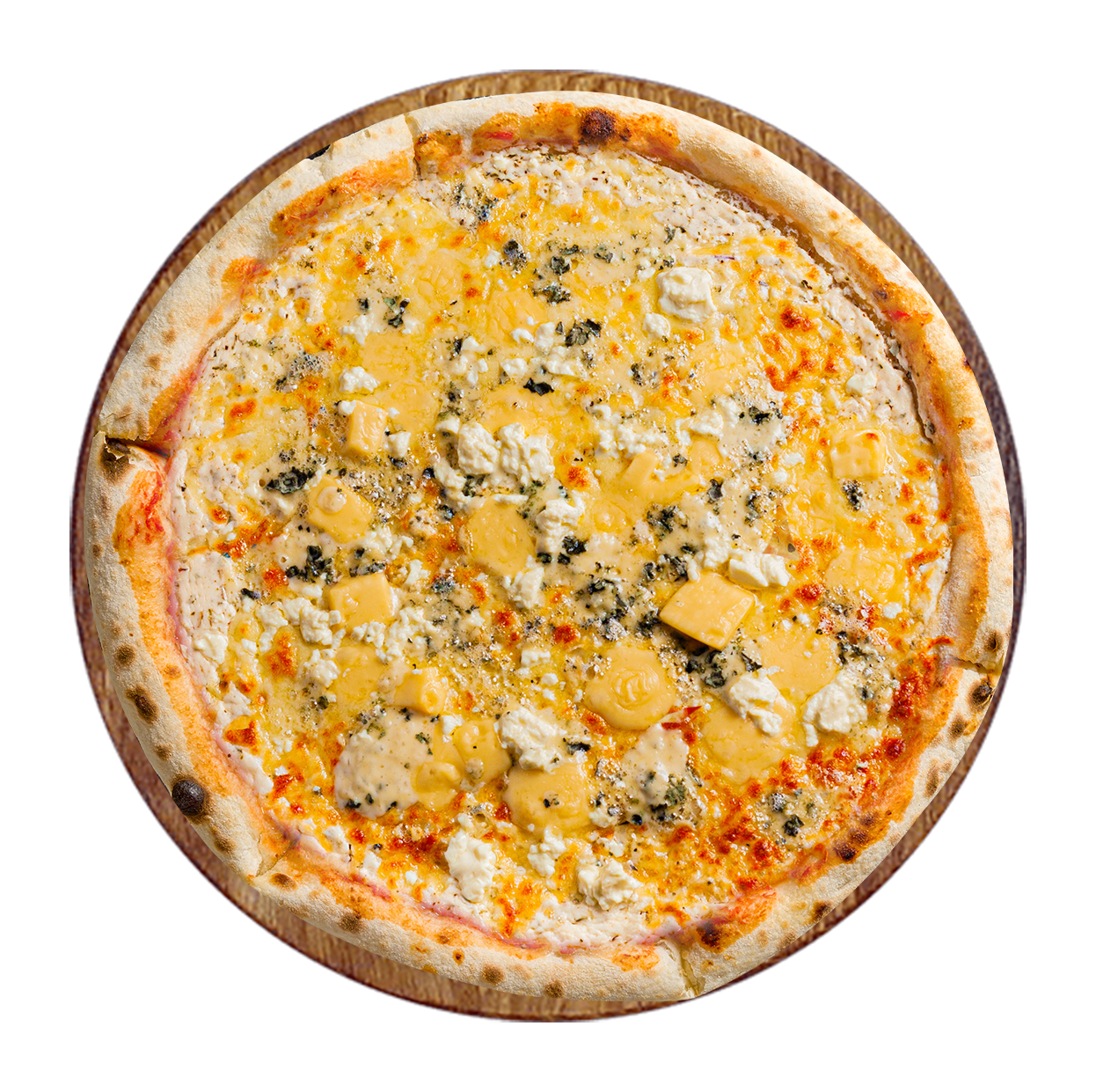 Sauce tomate, double fromage, gorgonzola, chèvre, raclette.