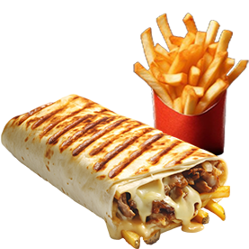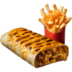 1 Viande au choix + Frites. Garnie avec sauce fromagère.