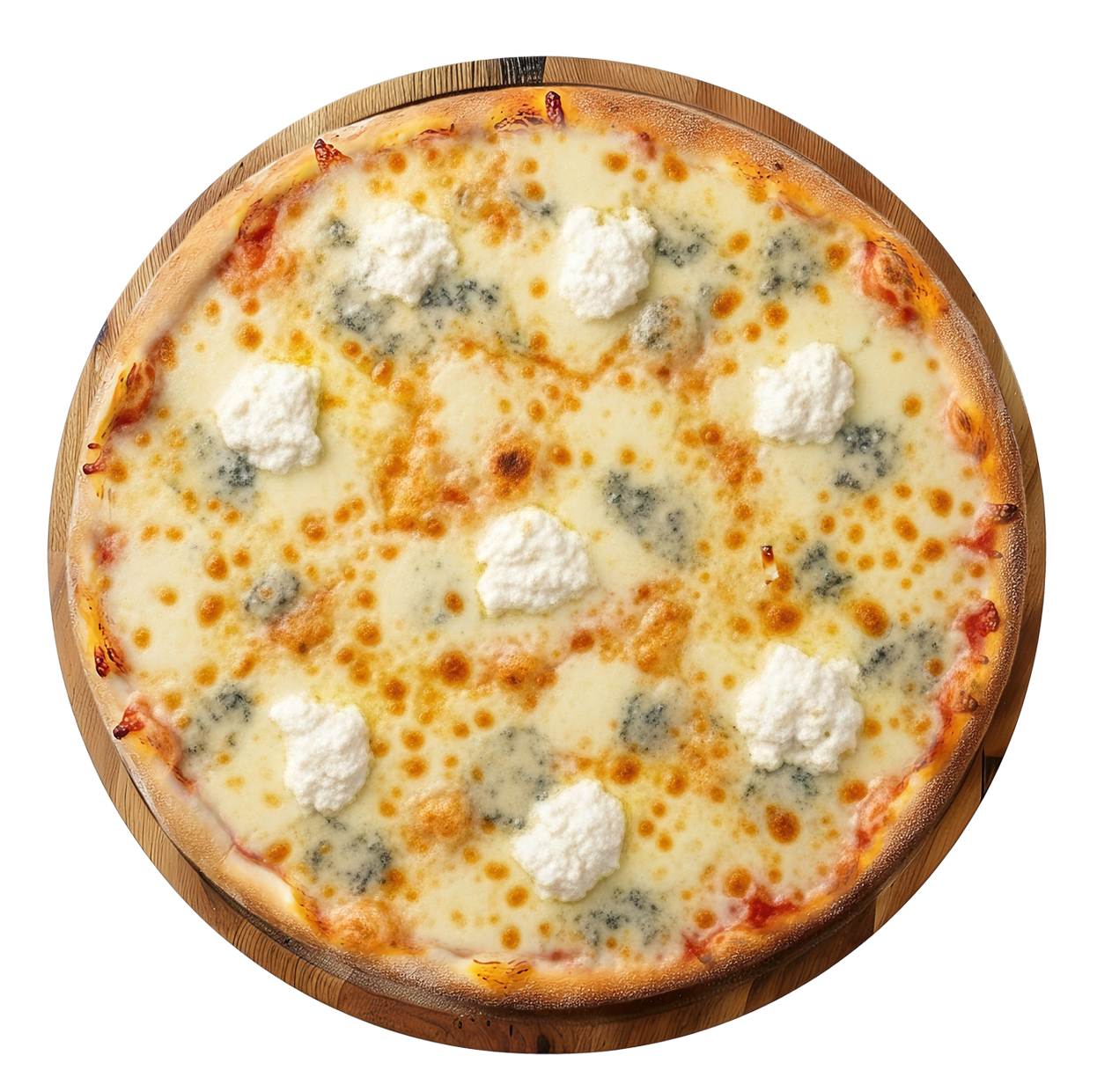 Sauce tomate, crème fraîche, mozzarella, bleu, brie, chèvre, parmesan.