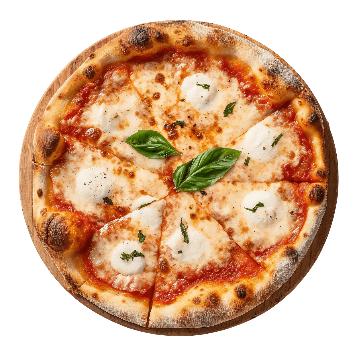Sauce au choix, mozzarella + 5 Ingrédients au choix.
