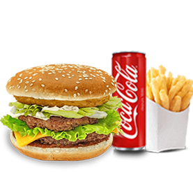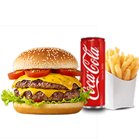 2 Steaks, cheddar + Frites + 1 Boisson 33cl au choix.