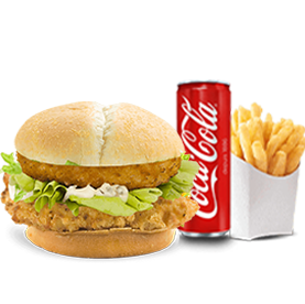 Filet de poulet, galette de pommes de terre + Frites + 1 Boisson 33cl au choix.
