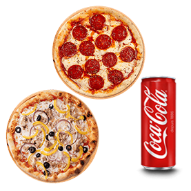 2 Pizzas senior au choix + 1 Maxi coca cola 1.25l.