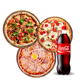 3 Pizzas junior au choix + 1 Maxi coca cola 1.25l