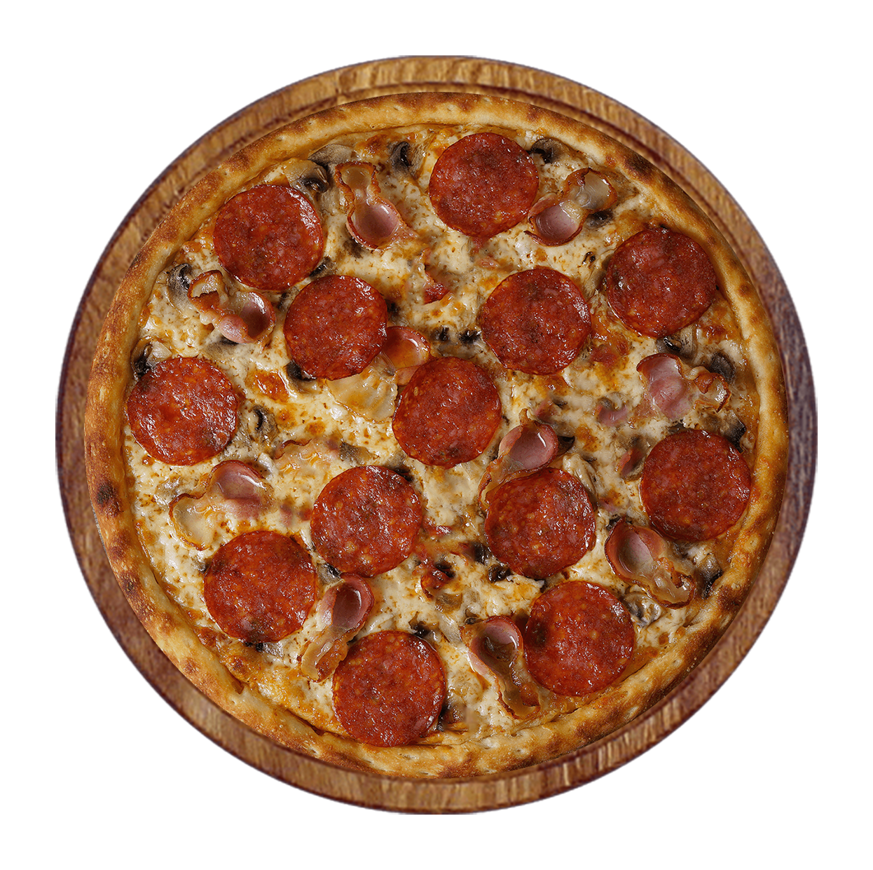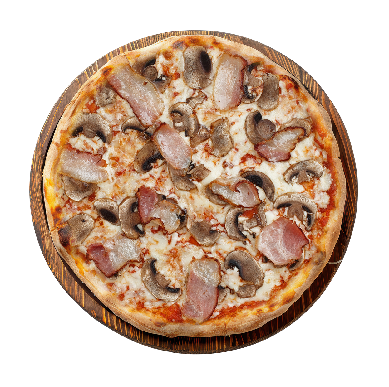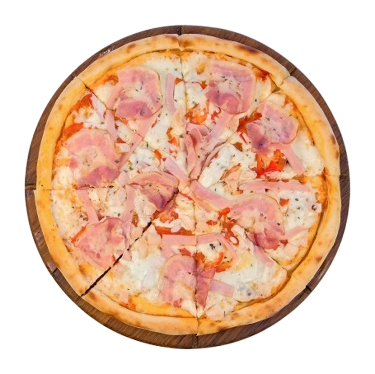 Tomate, fromage, jambon, lardons, crème fraîche.