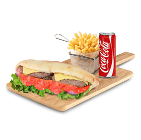 2 Steaks, cheddar + Frites + 1 Boisson 33cl au choix.